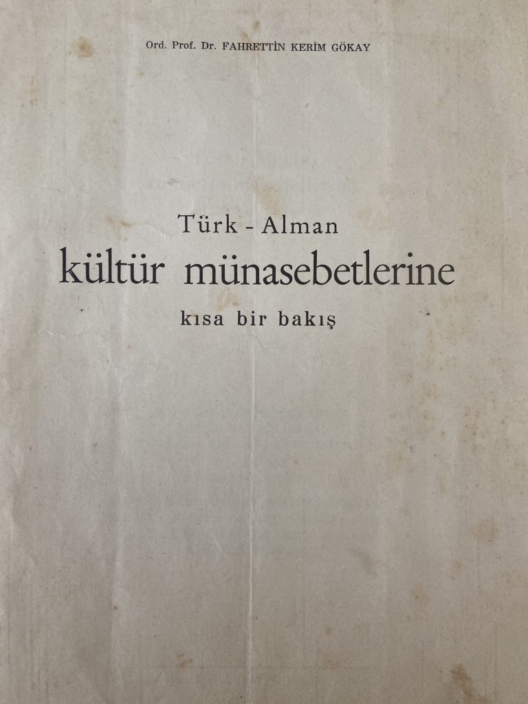 Fahrettin Kerim Gökay’ın bu konuşması, 1950’li yıllarda Almanya ile olan ilşkilerimize ve tarihine bir ışık tutması açısından önemlidir. Doğan Kardeş yayınları tarafından özel olarak basılan bu kitapçık, fiyatsız olarak sunulmuştur. Kuvvetle muhtemel Fahrettin Kerim Bey’in özel dostlarına ve çevresine dağıtmak üzere bastırdığı bir çalışmadır.